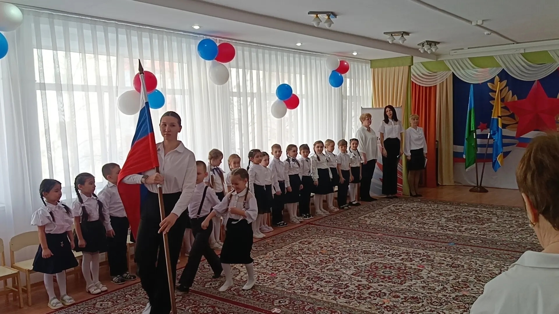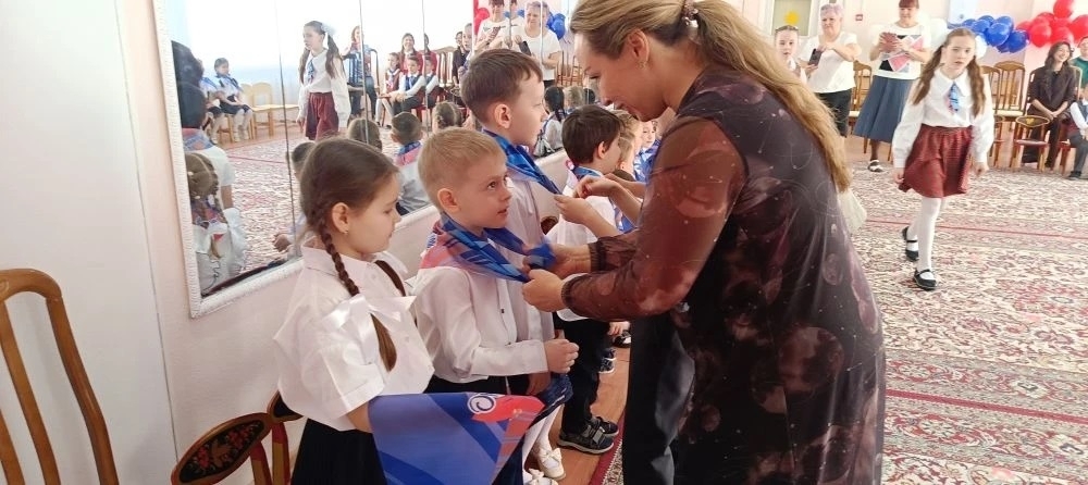 Поздравить юных орлят пришла исполнительный секретарь Местного отделения партии «Единая Россия» Алена Соловьева с подарками для ребят. Малыши продемонстрировали свои знания о нашей стране, что такое Родина и любовь к ней, дружба и взаимовыручка. По окончанию мероприятия деткам повязали галстуки и подарили шары.